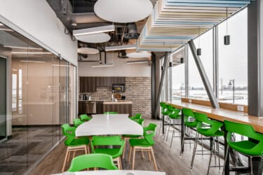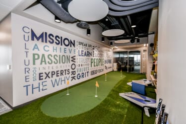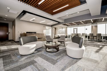we provided furniture for 52 private offices, 3 conference rooms, admin workstations, lobby and reception area, hallway seating, mailroom pieces, storage, and gym lockers, and their custom creative seating zone.